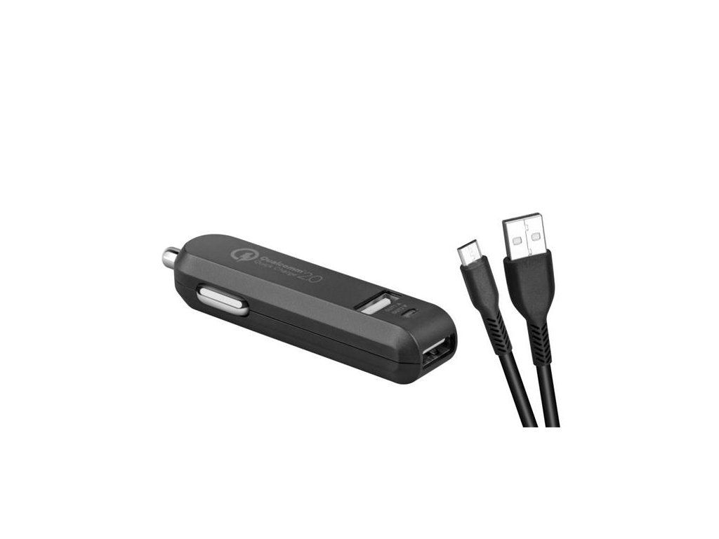 USB nabíječka do auta s rychlonabíjením Qualcomm Quick Charge 2.0 na obou USB výstupech. Včetně 100cm nabíjecího/datového kabelu USB - micro USB.