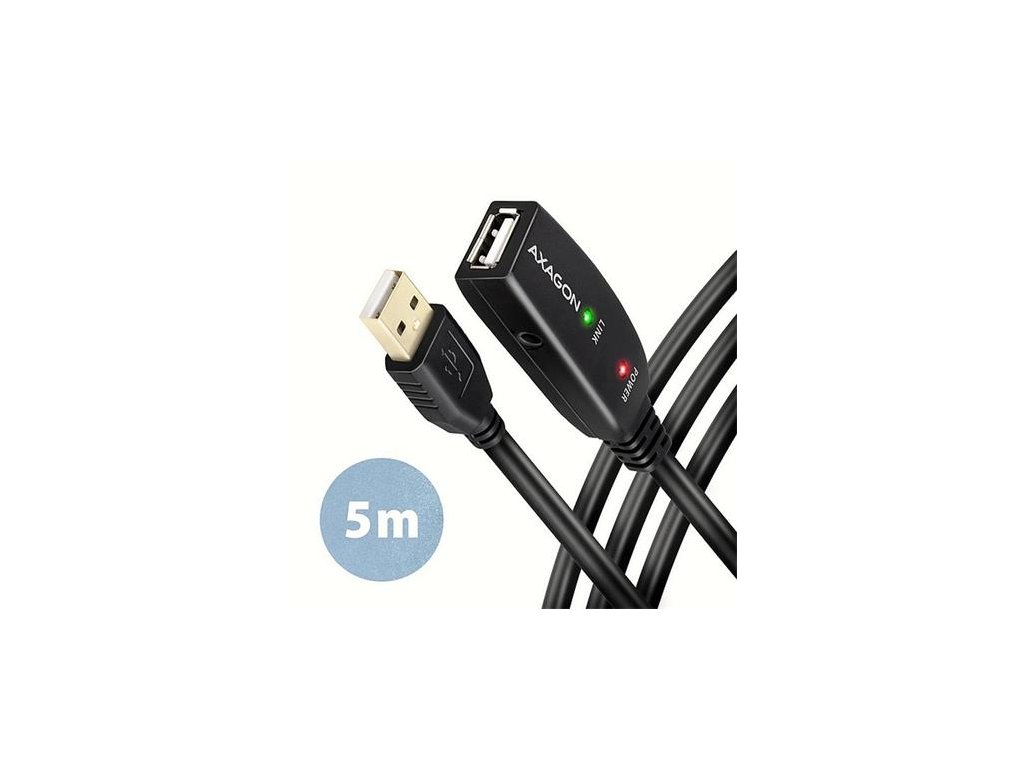 Aktivní prodlužovací USB 2.0 kabel AXAGON ADR-205 délky 5 metrů je ideální k propojení Vašeho počítače s USB zařízením jako je myš, klávesnice, webkamera, tiskárna, skener, plotr a dalšími. Aktivní USB repeater kabel zesiluje průchozí signál a umožnuje připojit USB zařízení na výrazně větší vzdálenost, než Vám umožní pasivní kabel. Dosah kabelu je možné dále prodloužit použitím několika kabelů za sebou.