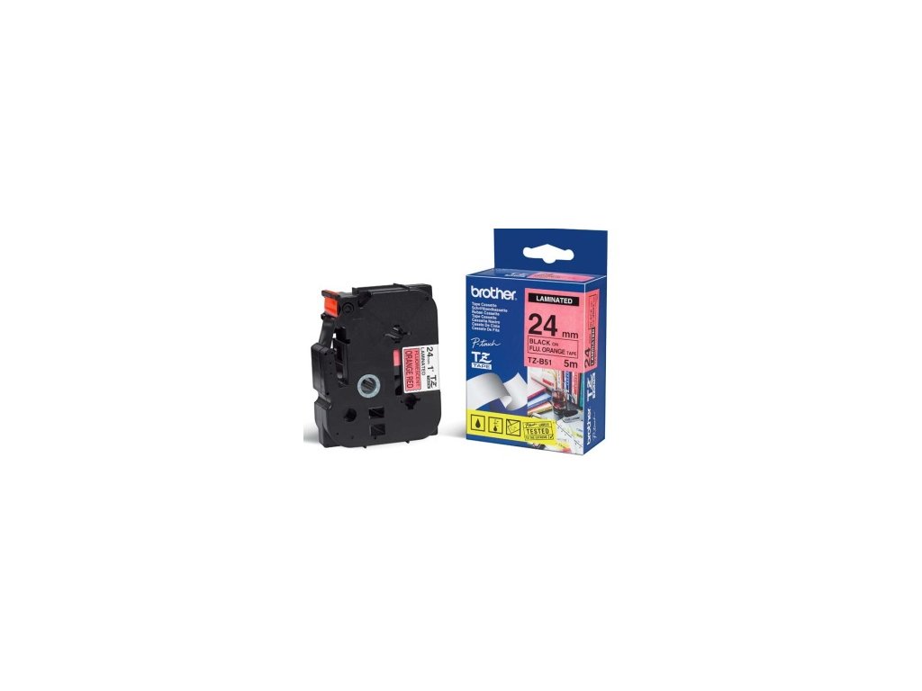 Originální kazeta s páskou Brother TZe-B51 - černý tisk na fluorescenční oranžové, šířka 24 mm
