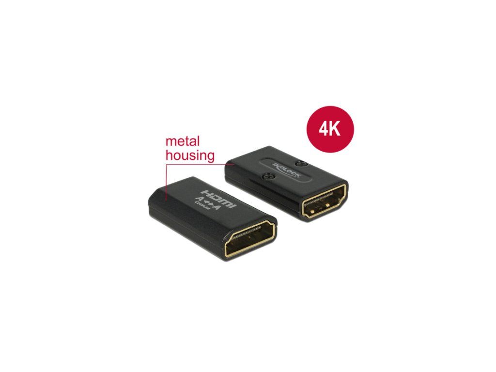 Tento HDMI adaptér od Delocku může být použit pro prodloužení HDMI připojení. Dále adaptér mění port HDMI-A samce na port samice.