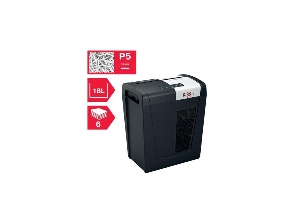 Řada skartovaček papíru Secure od firmy Rexel je ideální pro domácí likvidaci vašich osobních dokumentů a citlivých informací. Skartovačka Secure MC6 skartuje až 6 listů papíru A4 (80 g/m2), vkládaných najednou do ručního vstupního otvoru, na dílky s mikro řezem P-5 (2 x 15 mm). Tato skartovačka s mikro řezem je dokonalá pro použití jako domácí skartovačka nebo v domácí kanceláři díky svým malým a kompaktním rozměrům. Je to také ideální skartovačka pro domácí kancelář, která se pohodlně vejde pod stůl a pracuje s nízkou hlučností Whisper-Shred™. Je navržena na lehký až střední provoz s košem o objemu 18 l pro méně časté vyprazdňování.