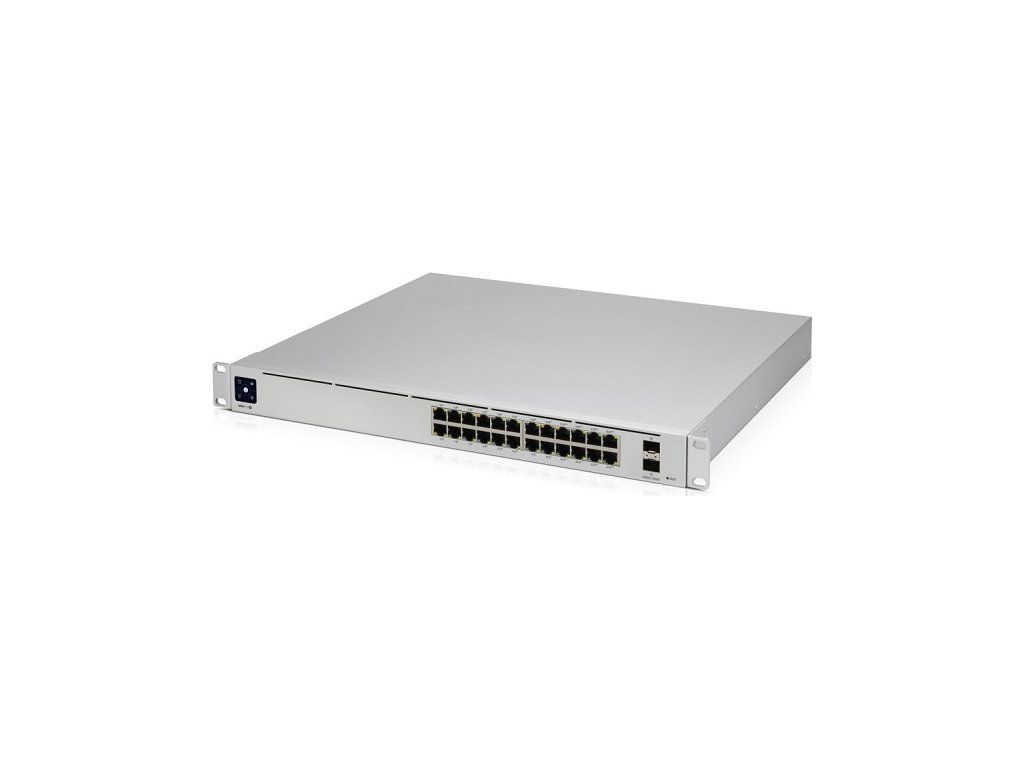 USW-Pro-24 je managovatelný Gigabitový L2 switch s 24x Gigabit LAN porty a dvěma porty SFP+ s přenosovou rychlostí 1/10Gbps. Switch má kromě standardní výbavy také 1,3" dotykovým displej pro poskytování informací o systému, teplotě, statistice portů a mnoho dalšího.